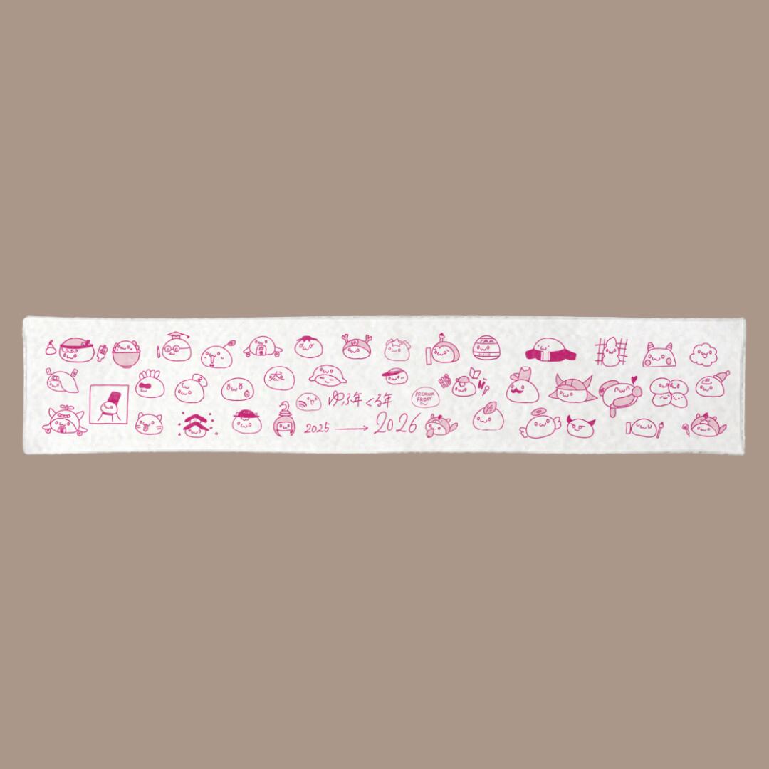 2025年の出来事を、ゆっふぃーのウマいイラストで記録したマフラータオルです(゚ω゚)